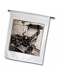 Lawn & Patio: Kike Calvo Travel - Sepia vintage wet plate Old linotype printer in Santa Clara Cuba - 18 x 27 inch Garden Flag (fl_219784_2) - 3dRose LLC